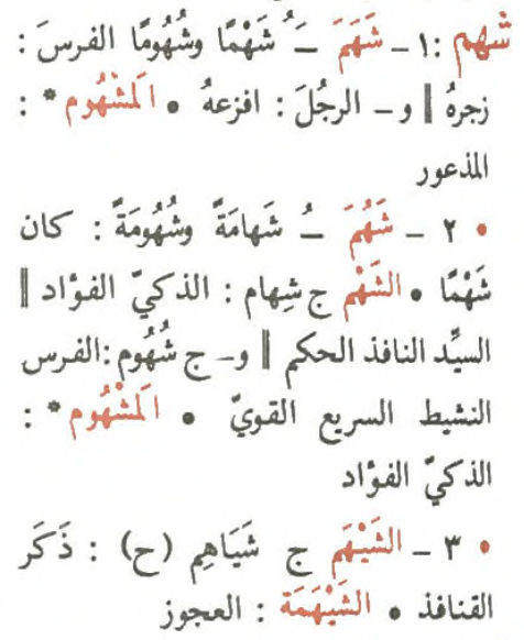 <orth>اَلمشْهوم</orth>
